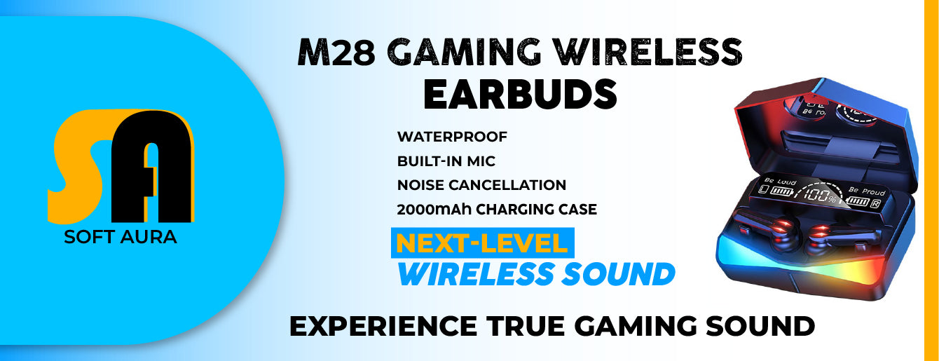 M28 Gaming Wireless Earbuds with RGB Lights & Digital LED Display